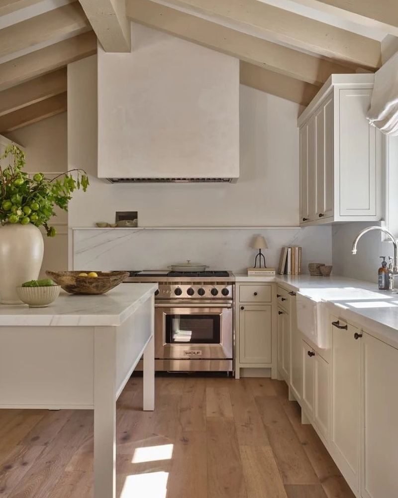 Beige is the ultimate “glow-up” for any kitchen. It’s warmer than white, more interesting than grey, and works with almost any budget. Whether you go full-on luxe with marble or keep it cozy with butcher block, you really can’t mess this up.