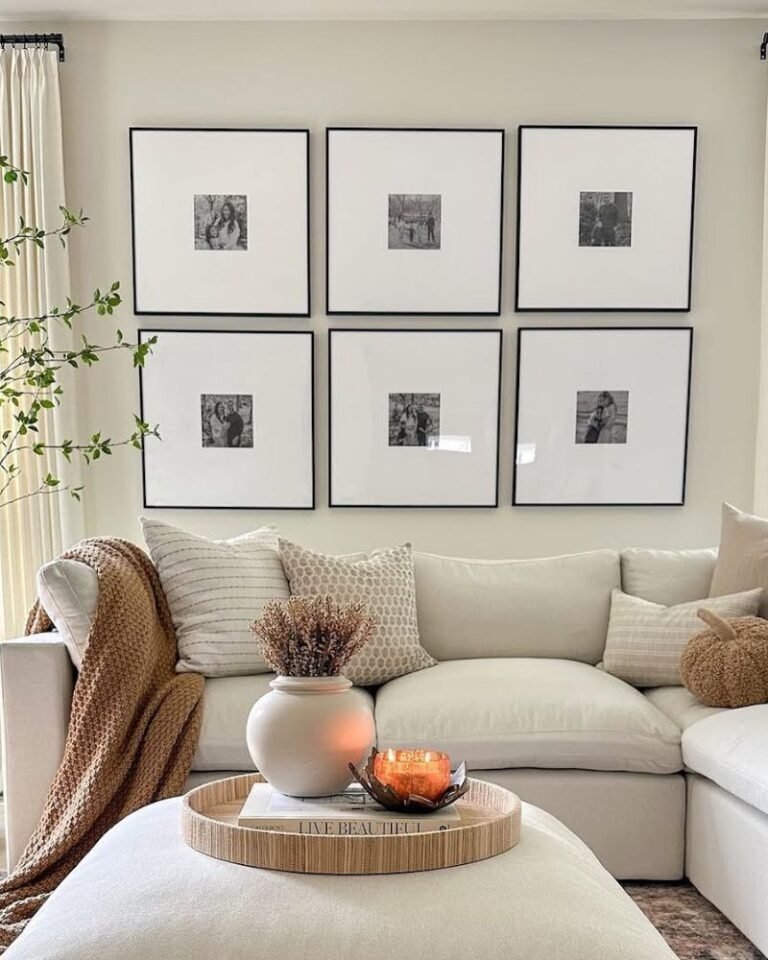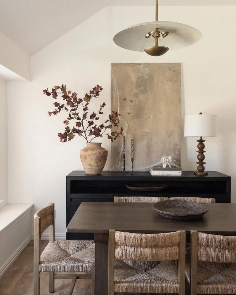 You don’t have to embrace bright orange if it hurts your soul. You can stay chic with beige pumpkins, stone-textured vases, and dried white florals. This “neutral fall” look feels expensive and crisp. It’s perfect for those of us who want the season’s vibes without the visual noise.