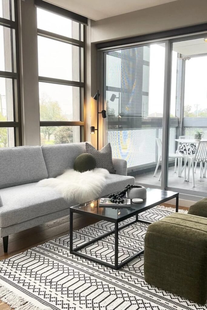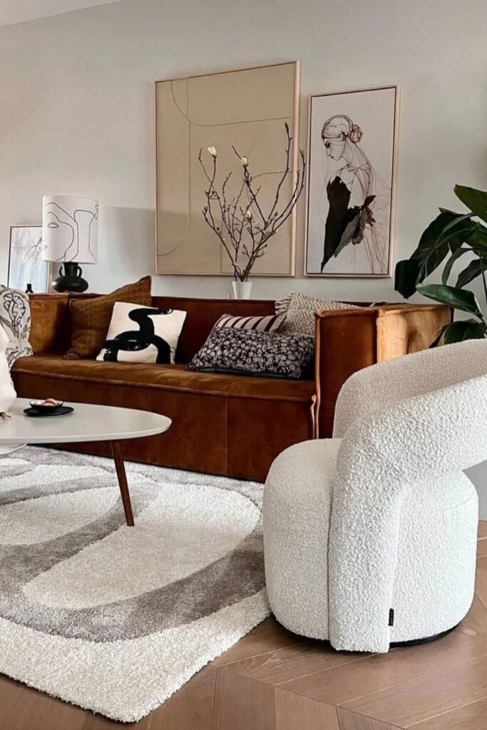Think of your furniture as art. Pair a curvy leather sofa with a funky-shaped vase. When the rug mimics the shapes in your wall art, the whole room feels like a curated gallery rather than a furniture showroom.