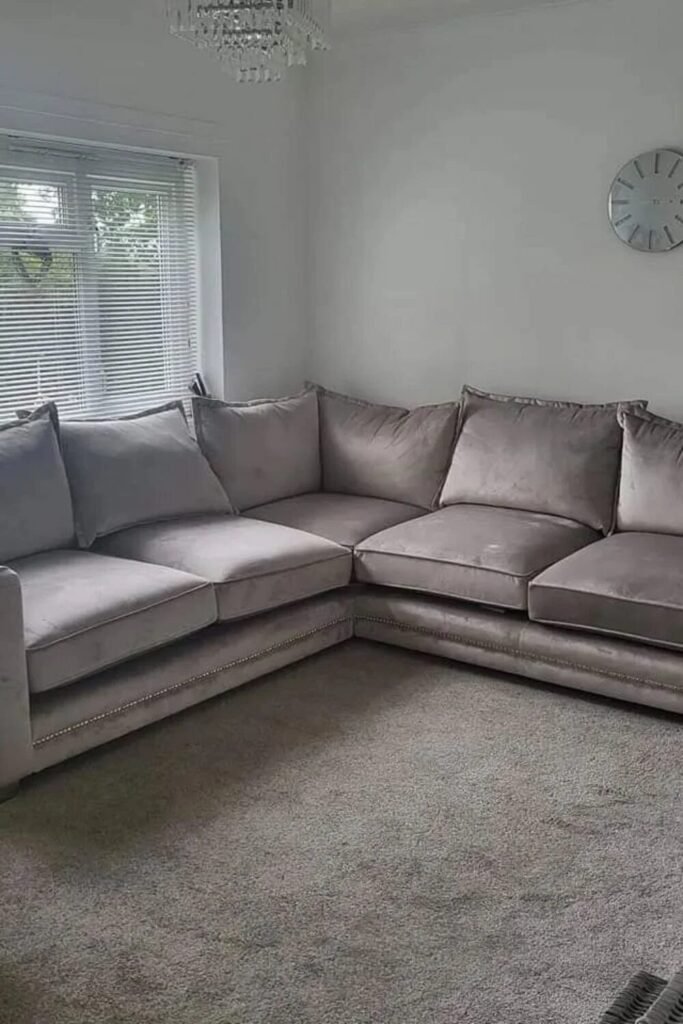 Go big or go home. Large, overstuffed velvet furniture in matching tones creates a “cloud” effect. It looks high-end, but the sheer scale of the plushness gives it that funky, oversized edge.