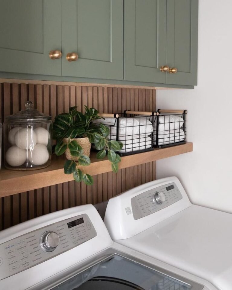 Sage green is having a massive moment in 2026, and for good reason. It’s calming. When you’re staring at a mountain of towels, “calming” is exactly what the doctor ordered. Pair it with a wooden drying rack to keep things organic.