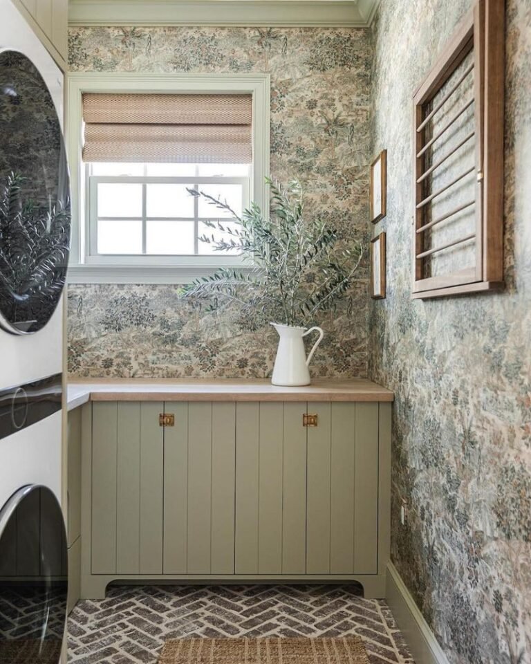 Small rooms are the perfect place to go wild with wallpaper. A vintage floral or a bold print turns a boring utility closet into a conversation piece. Fortune favors the brave!