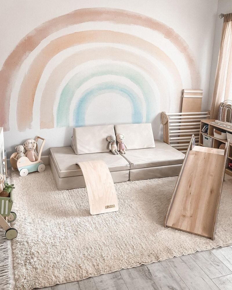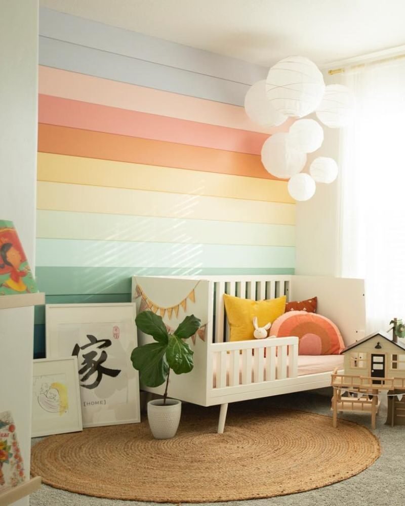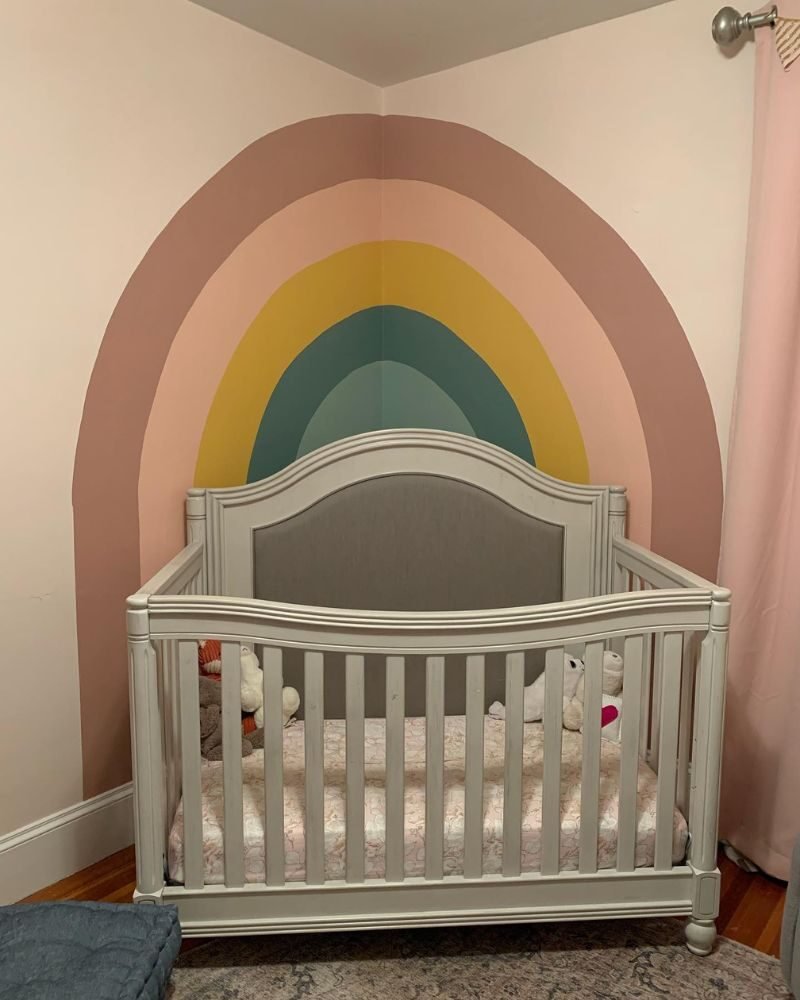 A small room? No problem. Wrap a partial rainbow mural around a corner. It creates a cozy “nook” feel without making a tiny space feel even smaller.