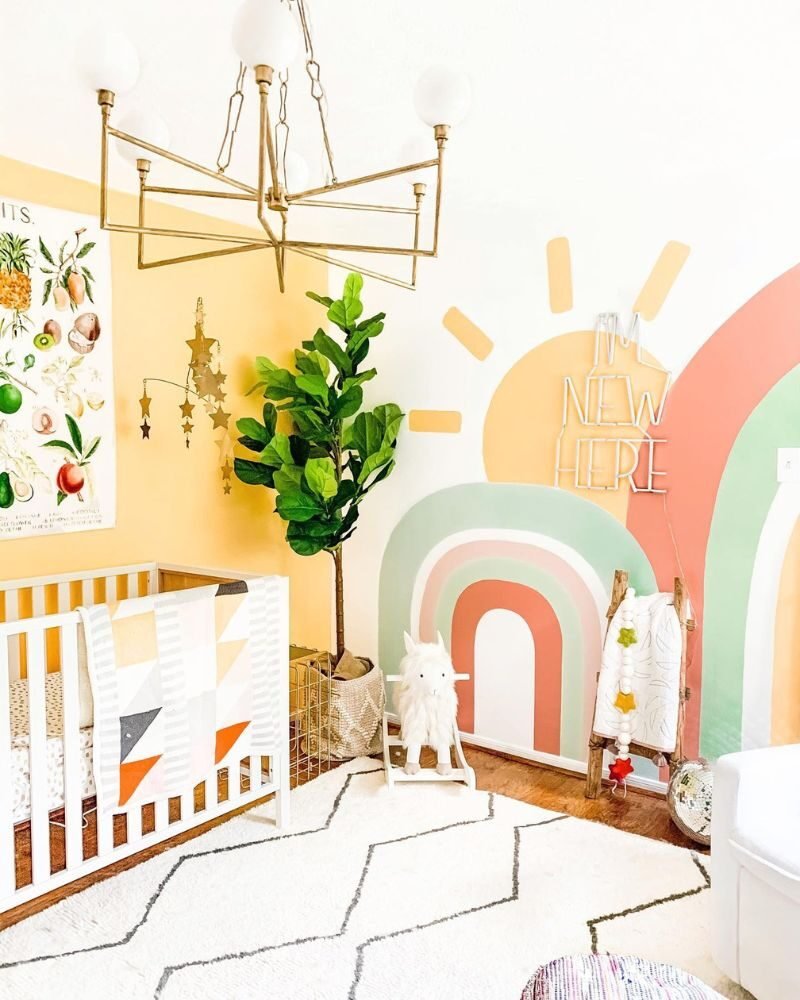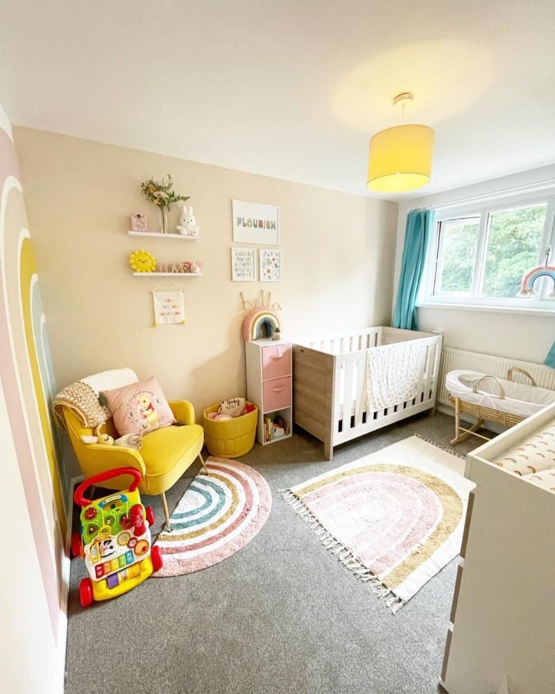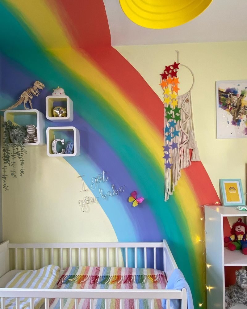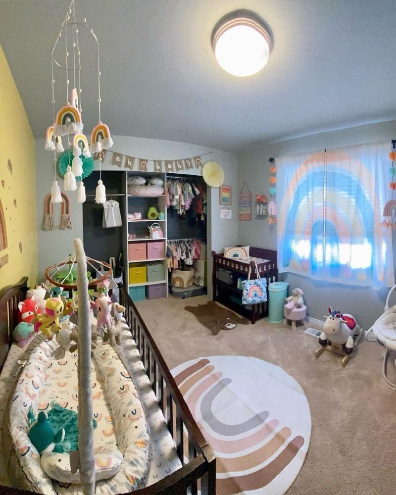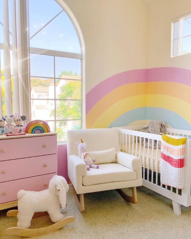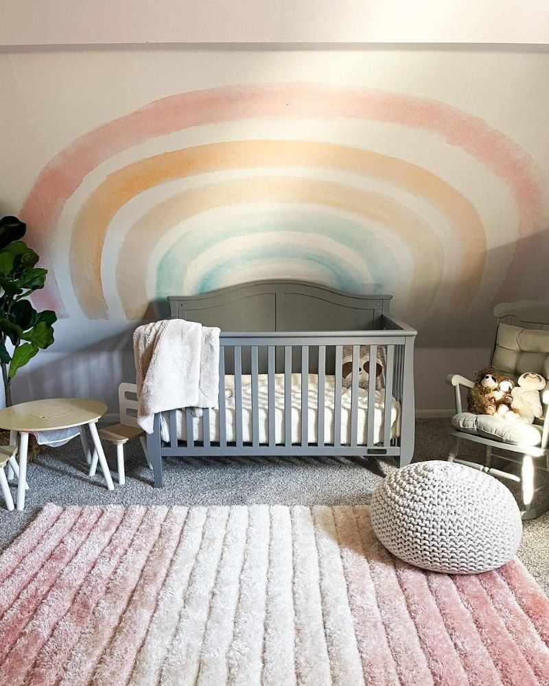 Setting up a nursery is a lot of work, but a rainbow theme is basically a “cheat code” for a cute room. Whether you go for a massive mural or just a few stickers and a rug, you really can’t mess this up.